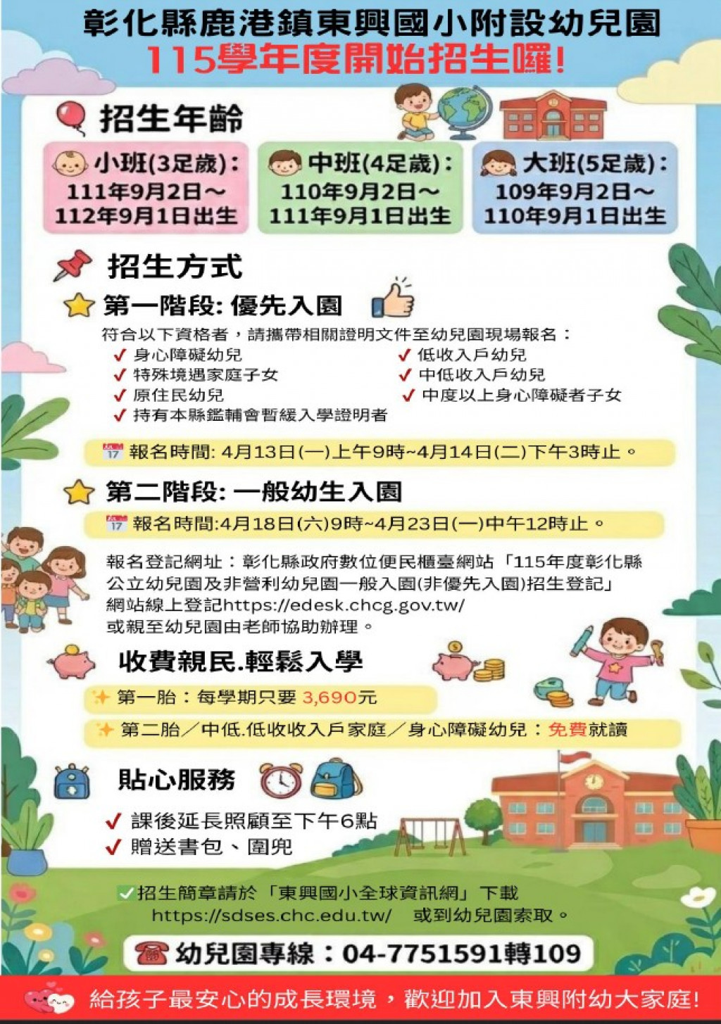 ✅招生簡章請自行下載 https://sdses.chc.edu.tw/ 或到幼兒園索取。
